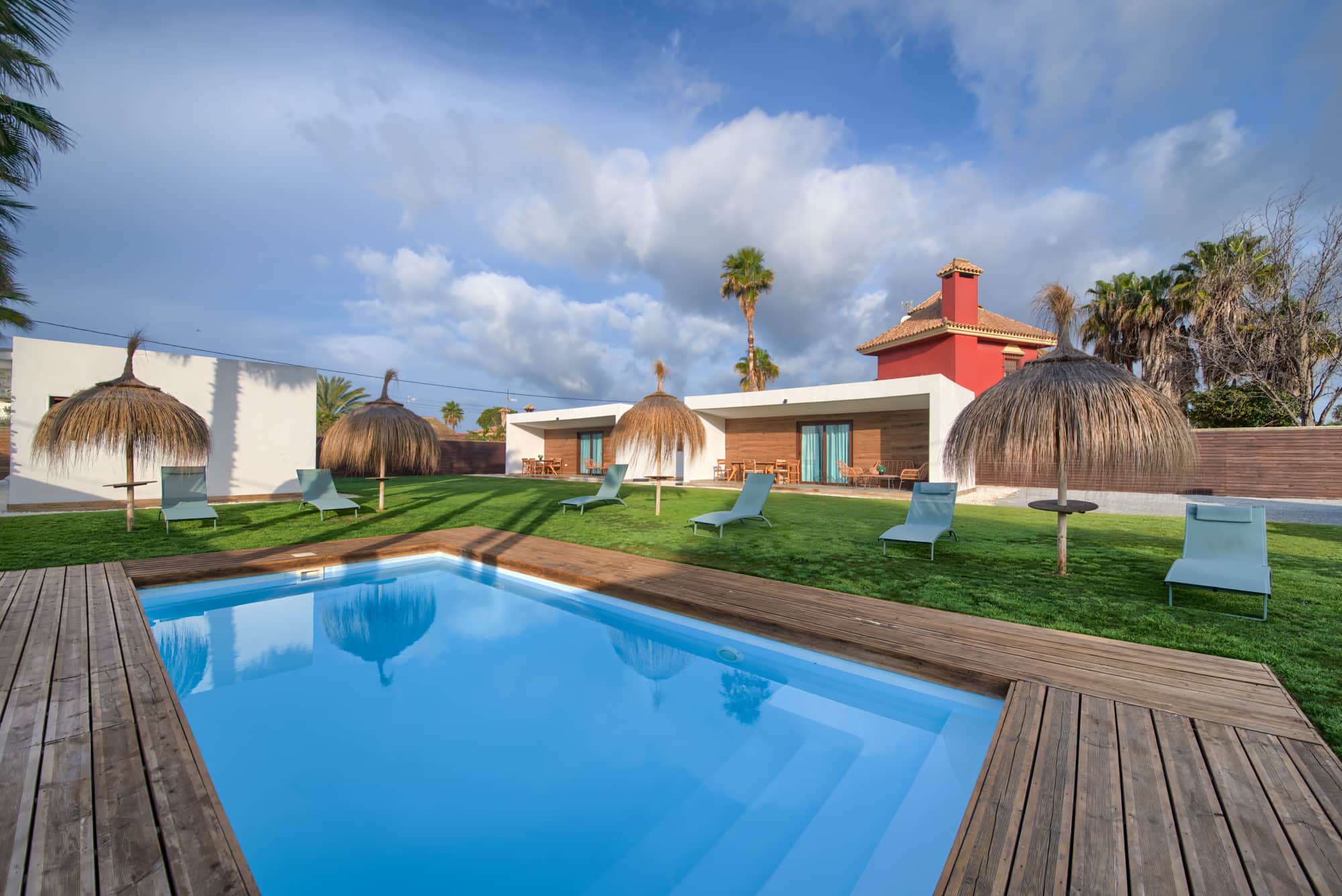 Piscina privada con hamacas